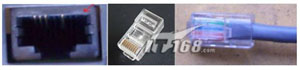 这是我们见的最多、应用最广的一种接口类型,它属于双绞线以太网接口类型。它不仅在最基本的10Base-T以太网网络中使用,还在目前主流的100Base-TX快速以太网和1000Base-TX千兆以太网中使用。虽然它们所使用的传输介质都是双绞线类型,但是它们却各自采用了不同版本的双绞线类型,如最初10Base-T使用的3类线到支持1000Base-TX千兆速率的6类线,中间的100Base-TX则中以使用所谓的五类、超五类线,当然也可以是六类线。这些RJ-45接口的外观是完全一样的,如图1左图所示,像一个扁 “T”字。与之相连的是RJ-45水晶头,如图2中、右图分别为一个水晶头和做好水晶头连线的双绞网线。如图2所示的就是一款24口RJ-45接口的以太网交换机,其中还有将在下文介绍的2个SC光纤接口和1个AUI接口。