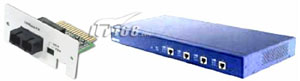 目前光纤传输介质发展相当迅速,各种光纤接口也是层出不究,不过在局域网交换机中,光纤接口主要是SC类型,无论是在100Base-FX,还是在1000Base-FX网络中。SC接口的芯在接头里面,如图3左图所示的是一款 100Base-FX网络的SC光纤接口模块,其右图为一款提供了4个SC光纤接口的光纤交换机。图2中所示交换机中也有2个SC光纤接口。