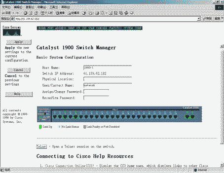 在你配置好IP和密码后,交换机就能够按照默认的配置来正常工作。如果想更改交换机配置以及监视网络状况,你可以通过控制命令菜单,或者是在任何地方通过基于WEB的Catalyst 1900 Switch Manager来进行操作。