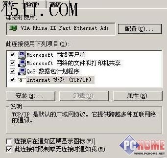 在桌面上右击“网上邻居”图标,在弹出的菜单中选择“属性”命令,在打开的网络和拨号连接窗口中即可看到本地连接图标。右击本地连接图标,在弹出的菜单中选择“属性”,这样就打开了本地连接的属性窗口,在该窗口“常规”标签的底部将“连接后在通知区域显示图标”项取消,再单击“确定”按钮保存设置(图1),这样任务栏上的本地连接状态图标就不见了。