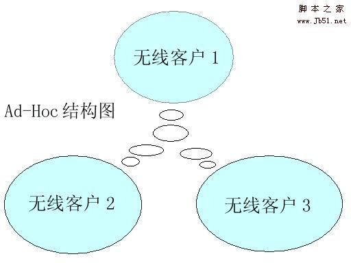 先来了解无线局域网的Ad-Hoc结构。与有线局域网类似,这是一种对等网络结构,各计算机只需安装了无线网卡,彼此即可实现直接互联,无需中间起数据交换作用的AP。同时,该结构中各无线用户的位置是平等的,如不加特殊限制,各用户的操作权限也是相同的。