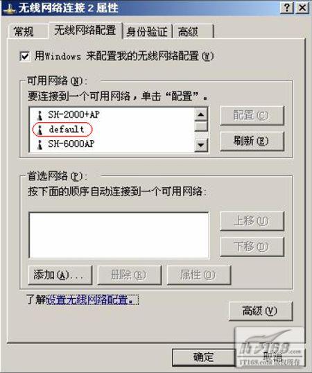 8. 此时您会看到在首选网络项目上,显示【default】,然后再点选【确定】。