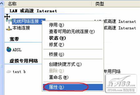4. 对着无线网络连接按鼠标的右键再选择【属性】。