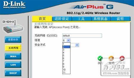 2、点选【首页】-点选【无线网络】项目,变更无线路由器的【频道】,无线路由器总共有11个频道可供您变更,您可以试着调整这11个无线网络频道,以避开您环境中可能的无线网络干扰源,寻求最佳的讯号接收强度。.完成设定后点选「执行」按钮。