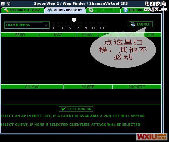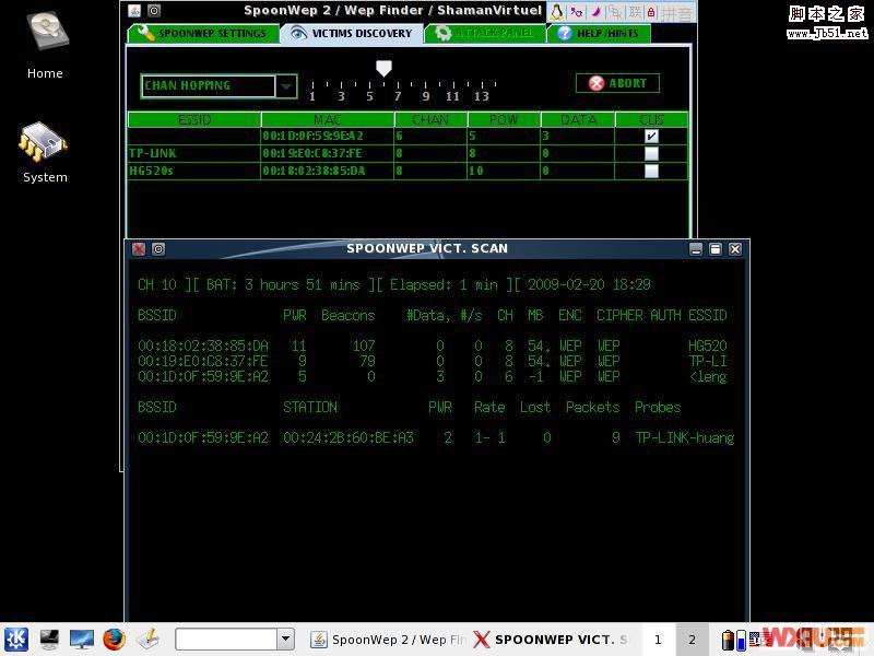选择开始-backtrack->radio network analysis->80211->all->spoonwep2,跟windows操作一样