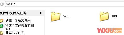 2、将刚才下载完成的bt3解压缩,复制到优盘,完成后会看到优盘目录下有两个文件夹,一个boot 一个BT3。如下图: