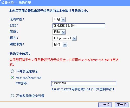 点击“下一步”设置无线安全。