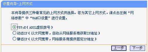 步骤4:点击“下一步”,弹出上网方式选择页面。选择您的宽带上网方式(此处以PPPoE拨号为例),选择“PPPoE(ADSL虚拟拨号)”。