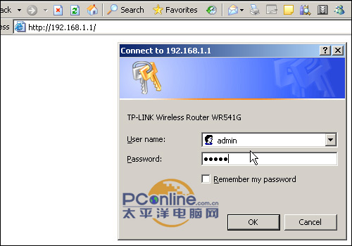 在配置无线路由器之前,我们首先要连接好相关的线路。先把连接Internet端的网线插入无线路由器的WAN端口,然后我们需要一台计算机通过网线连接路由器的LAN口对路由器进行相关的配置。首先要确保本地的计算机操作系统安装了TCP/IP协议,对于Windows 2000以上级别的用户这个步骤可以忽略。由于路由器默认的地址为192.168.1.1,子网掩码为255.255.255.0,因此我们必须手动设置本地的连接地址为同一个网段之内才能正常配置路由器,即把本地连接的地址设置为192.168.1.xxx(xxx=2~254)。子网掩码为255.255.255.0。设置完成之后打开IE输入192.168.1.1无线路由的默认地址之后就会弹出以上窗口,要求用户输入管理员的用户名以及密码。用户名和密码都可以从产品说明书上获知,一般都为admin。