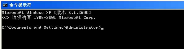 在Windows XP 环境中,点击开始-运行,在随后出现的运行窗口输入“cmd”命令,回车或点击确定进入下图所示界面。