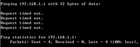 输入命令:Ping 192.168.1.1,回车。
