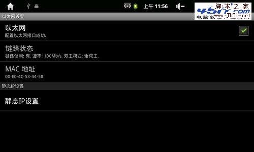 f,点击状态栏右上角“菜单”键,选择保存,然后按“返回”键回到以太网设置界面下,此时会提示“配置以太网接口成功”,此时就可以正常使用有线进行上网了。