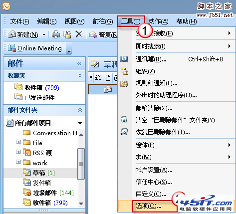 请打开邮箱,在菜单栏上单击“工具”-“选项”。