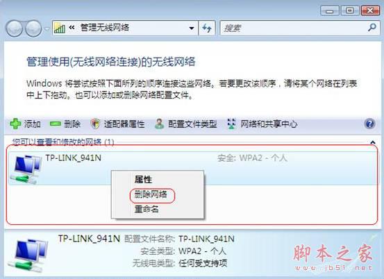 “网络和共享中心”-“管理无线网络”,将其中内容清空。