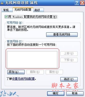“无线网络连接”-“属性”-“无线网络配置”,将“首选网络”框中内容清空。