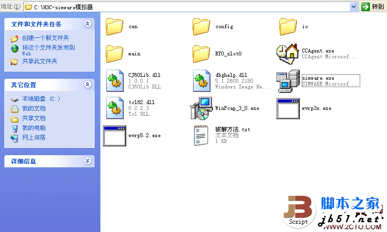 我这的H3C simware演示环境,一个文件夹下包括,代理程序CCAgent,模拟器simware,模拟软件wvrp3.0,wvrp5.2a。抓包工具WinPcap3.0