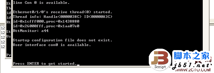 18、当最后一行出现“Press ENTER to get stated.”表明路由器已运行起来。最小化这些窗口。接下来就是用SecureCRT连接的事了。