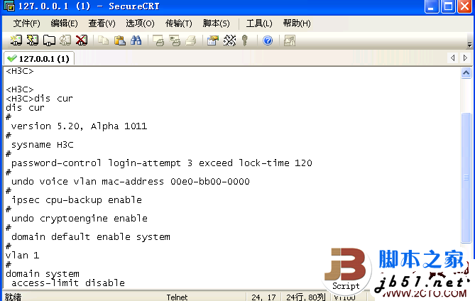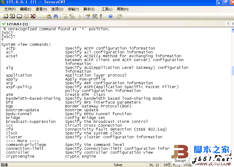 下面就来介绍一下怎样用SecureCRT连接到H3C simware 模拟器进行H3C路由、交换的模拟练习。H3C simware模拟软件版本wvrp 5.2a。