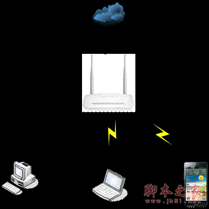 说明:无线路由器相当于一台有线路由器加一个无线发射的小型“基站”,可以同时满足有线电脑、无线的笔记本、手机等终端同时接入共享宽带上网。