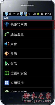 STEP1:手机主界面选择“设置”菜单,进入手机设置页面。选择“无线和网络”,打开“无线和网络”设置页面。