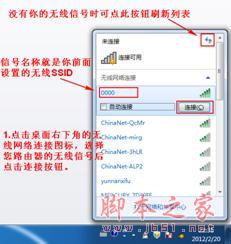 步骤二:设置无线电脑/手机/PAD①若要使用电脑无线来连接路由器,首先要保证您的电脑配有无线网卡并能正常工作,对不同操作系统的电脑,其搜索并连接无线信号(本例无线SSID为0000)的方法如下: