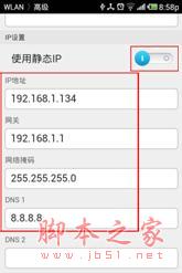 l 点击无线名称进行连接,输入无线密码即可连接成功。如果无线连接成功但是上不了网,您可以参考下面的图2、图3将手机的IP地址指定。