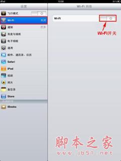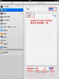 l 打开IPAD主界面,选择"设置"菜单后点击Wi-Fi进入Wi-Fi网络界面。然后开启Wi-Fi开关并在无线网络列表中单击您自己路由器的无线信号。