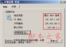 经过上面的配置后,您的电脑就会自动向路由器"索要"IP地址,路由器也会在接收到请求后分配参数给电脑,成功后点击电脑右下角的网卡图标—>"支持"页面可以看到电脑获取的参数,如图: