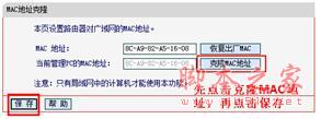 l 部分服务商可能绑定了MAC地址,请使用之前单机可以上网的电脑,有线登录到路由器的管理界面,选择"网络参数—MAC地址克隆",点击"克隆MAC地址",然后保存,并根据提示重启路由器,观察路由器是否可以获取到IP地址;