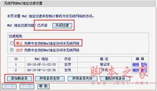 l 检查路由器是否设置无线MAC地址过滤,使用网线连接路由器进入管理界面,打开无线设置—无线MAC地址过滤查看,如果启用,可以关闭或者添加该无线网卡的MAC地址;