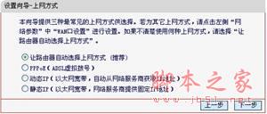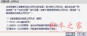 ③选择"上网方式"(常见上网方式有PPPOE、动态IP地址、静态IP地址三种,请根据下面的描述选择对应的上网方式):
