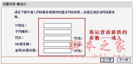 静态IP要输入运营商给您的IP地址、网关等参数