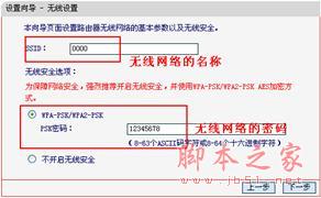 ④设置无线名称和密码(如果是有线路由器,此步自动跳过):