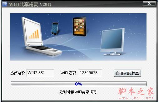 二、使用方法1、双击桌面上的WIFI共享精灵 图标,运行程序。