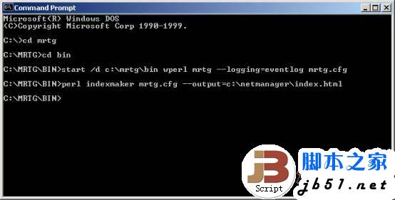 运行命令 c:\mrtg\bin>start /D c:\mrtg\bin wperl mrtg –logging=eventlog mrtg.cfg