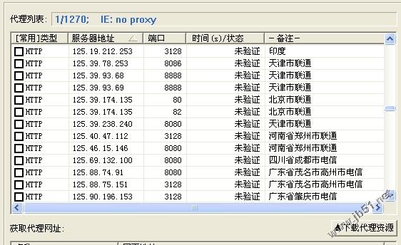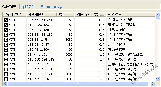 下载本站的已经整理好的代理列表文件:http://xiazai.jb51.net/201301/other/proxy_jb51.rar ,使用右键另存为proxy.txt文件。