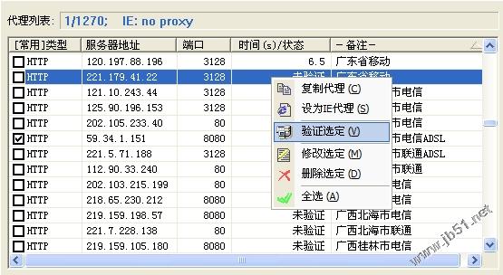 也可单个代理验证,选择要验证的代理地址,再选择验证选定。