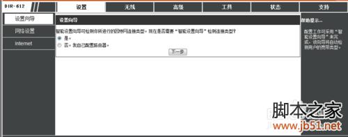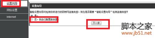 如图,点击“设置向导”,选择“否,我自己配置路由器”,点击下一步