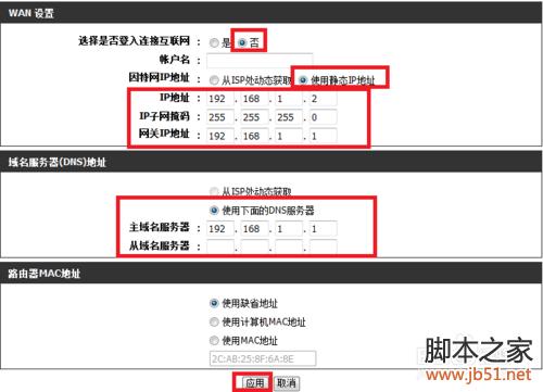 DNS(主域名服务器)也可以设置成有线路由器的IP地址