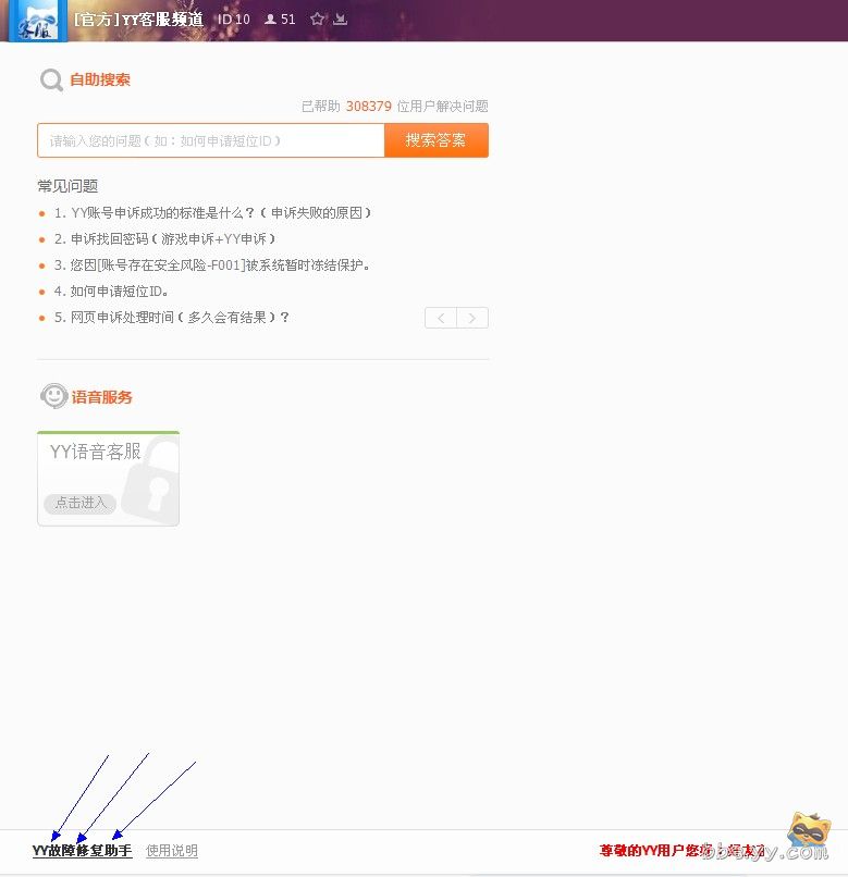 1、进入10频道→点击下载频道左下角的“YY故障修复助手”下载保存在电脑
