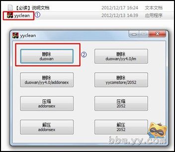 2、将电脑上“YY修复助手”解压压缩包→点击文件“yyclean”→点击“删除duowan”即可清理YY缓存。