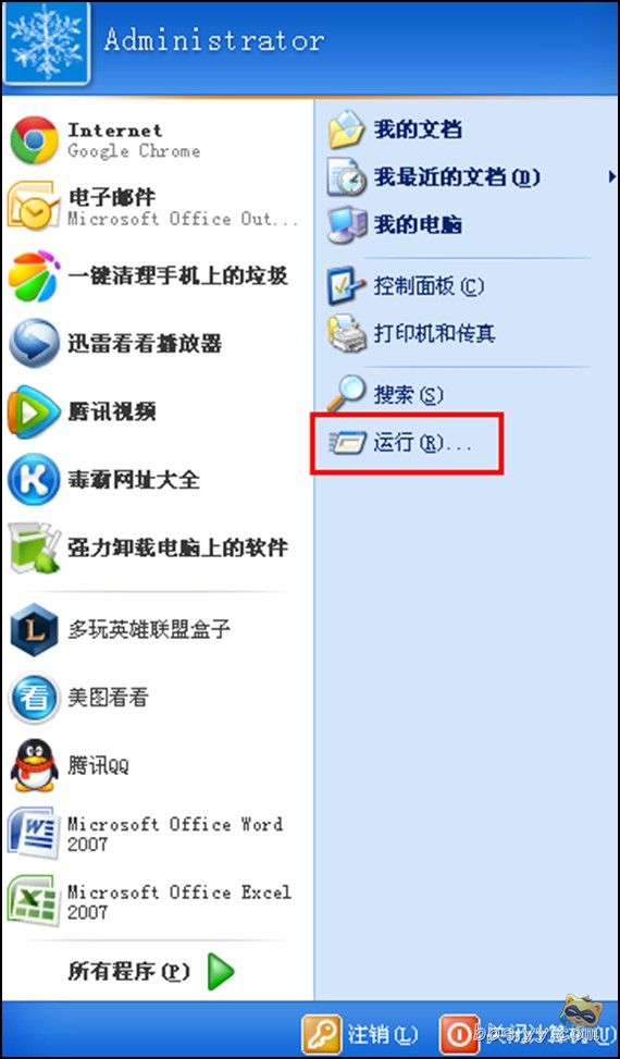 第一步:以XP系统示范,先打开运行