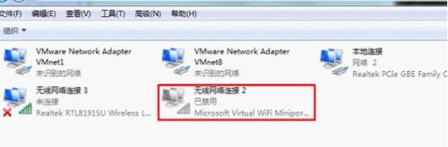 5再次打开网络连接——刷新,出现了虚拟网卡,发现被禁用了,右击虚拟网卡,启用
