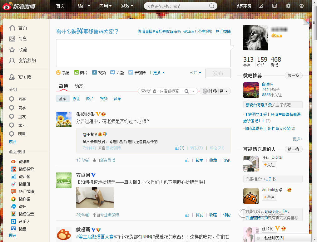 新浪微博安卓版:www.jb51.net/softs/82130.html