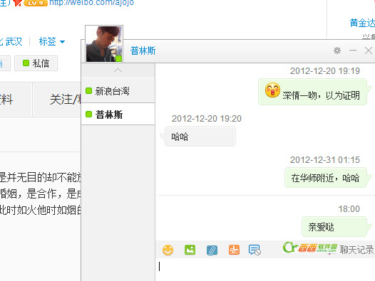 新浪微博是新浪在facebook和twitter的基础上发展的一个国产类twitter网站,现在全球范围拥有数亿用户,几乎所有的华人都有使用微博的经历。微博除了像推特一样可以关注和发微博消息外,还可以让用户之间进行即时信息交流,那么怎么样才能看到对方的在线状态和ta交流呢?小编教你吧免费的哦