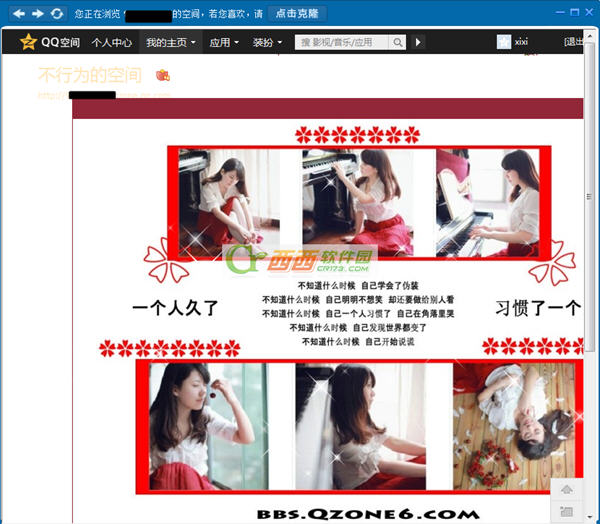 一直很羡慕QQ好友的空间,他们的空间都非常的炫酷。。小编的QQ空间看起来非常的单调,小编知道他们都是黄钻会员弄的空间。小编也不是经常上QQ空间的,绝得完全没必要弄个黄钻,所以就想有没有什么工具能够完善一下自己的QQ空间,让自己的空间也变好看。。后来我们弄QQ的同事发给我一个qq空间克隆器,说是能免费克隆别人的空间,小编试了一下,效果非常的赞,现在小编就来分享一下使用教程,让大家都拥有好看的QQ空间。