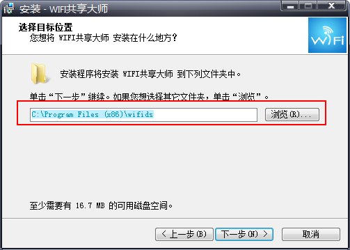 1、首先下载wifi共享精灵安装程序并安装该软件,建议不要默认安装在C盘自己选个盘符安装。