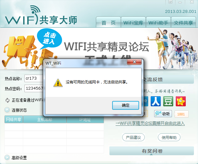 有些情况下wifi共享精灵是无法启动的。要确认自己是出现了以下哪种情况判断不能启动的原因。