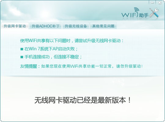 2、win7系统下启动失败或者手机连接wifi不稳定,这里我们可以点击wifi助手选择升级网卡驱动。