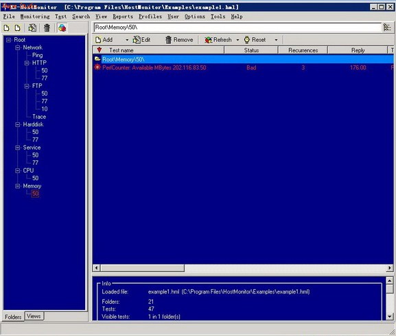 5. Memory:针对50上的可用物理内存,低于200Mb时警报
